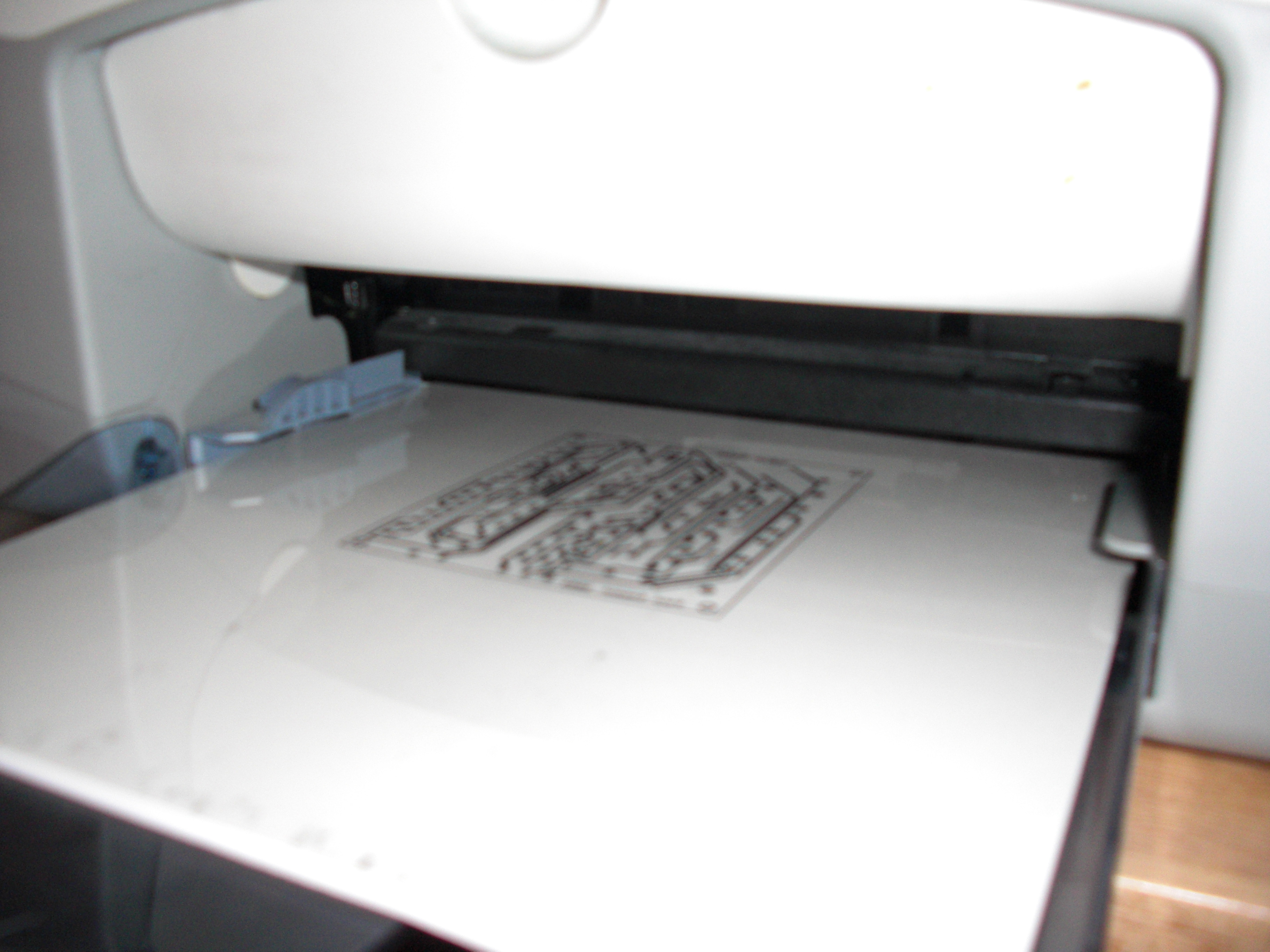 They allow hobbiests to make 6" boards free otherwise you have to buy it (actually not any more now only 4"). You can either print them out on a laser jet or an ink jet just make sure you have the right transparencies. On either, make sure the transparancies are reasonably dark and there are no gaps in the ink. On my inkjet printer I find that setting the quality to best, and the ink volume to the lowest amount gives the best result (good quality, not so much ink that it beads up). It is ok if you can see through the ink a little bit, just as long as it is reasonably dark. One important note is to make sure that if you print on an ink jet that the rough side of the transparancy is facing out when it is exposed. If the ink is directly against the board you get weird reuslts, you end up with an outline of the circuit, and the middle of the circuit gets exposed, its weird.